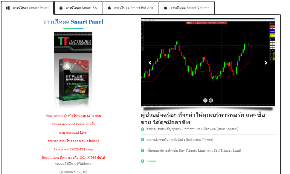 4. เข้าเว็บไซต์ https://www.toptrader.co.th/download/ หรือเลือกจากเมนู Download ของเว็บดังรูป