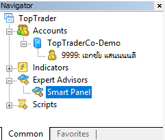 14. ที่ MT4 Terminal -> Navigator -> Expert Advisors จะพบ Smart Panel ดังรูป